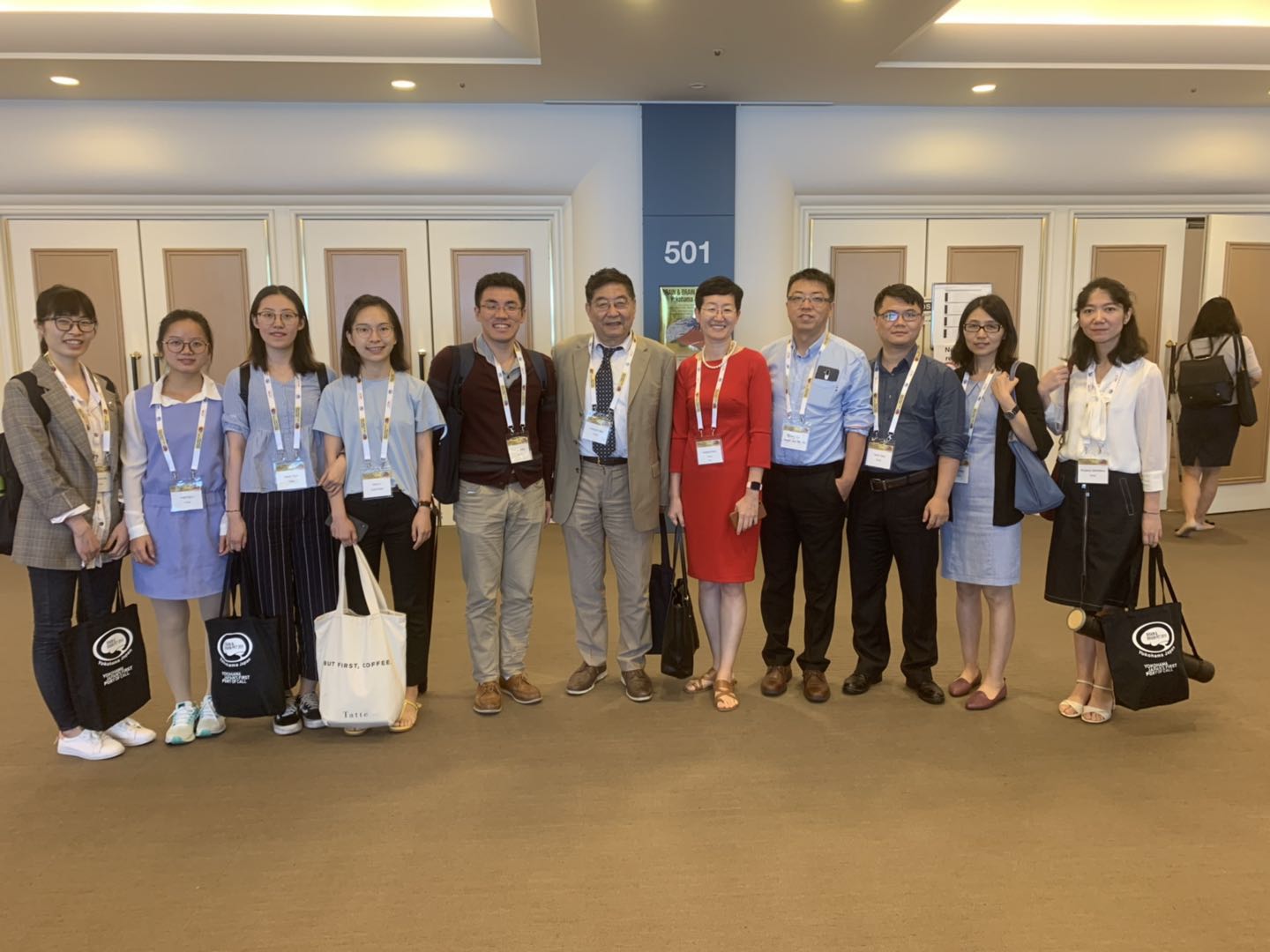全体参会人员(包括课题组已毕业同学)在会议大厅前合影