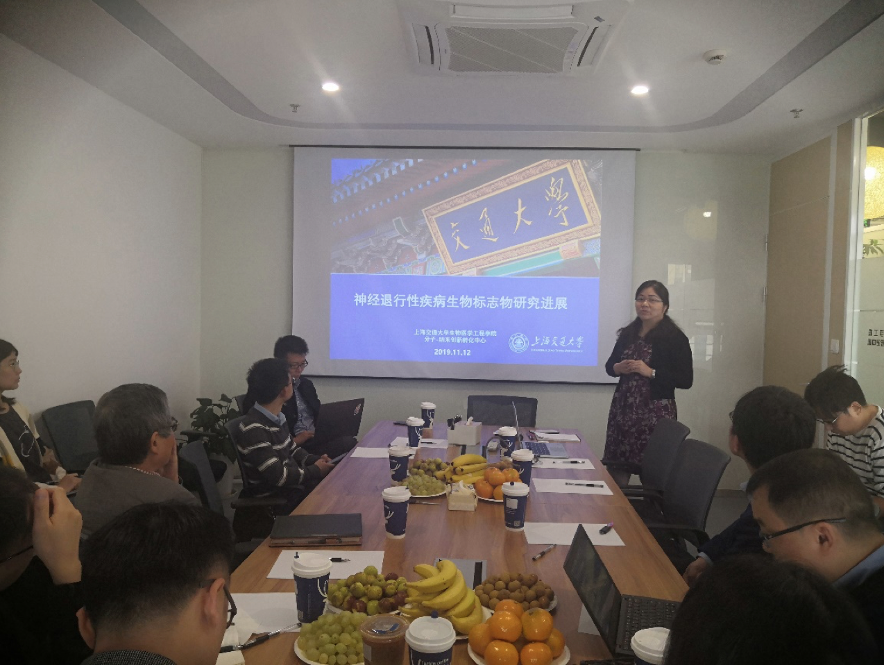 2019年11月12日,由beat365官网徐宏研究员发起的“阿尔兹海默症早期诊断的医工交叉研究”交叉创新沙龙,在徐汇区桂平路333号1号楼beat365在线唯一官网登录分子与纳米医学创新转化中心举办。本期活动由beat365在线唯一官网登录和上海百羿分子与纳米医学创新转化中心联合组织。来自上海市华山医院神经内科主任医师郁金泰、beat365在线唯一官网登录古宏晨教授、殷卫海教授以及学院相关领域师生近20人参加了本次讨论,为阿尔兹海默症的诊断与治疗的应用研究提供了宝贵的临床经验与科研导向。