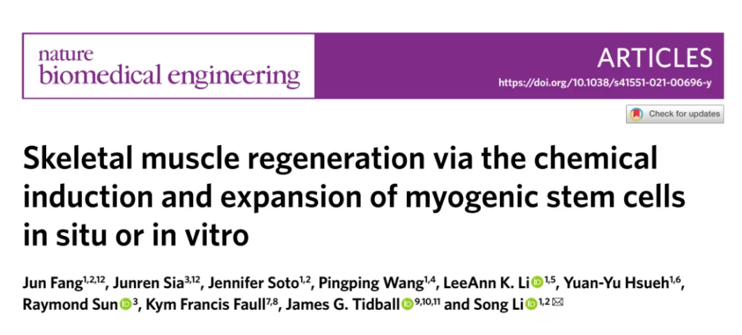 该研究首次发现一组化学小分子药物可在体外及原位高效诱导扩增肌肉干细胞,成功实现老龄化和杜氏肌肉营养不良型病损肌肉组织的修复。
