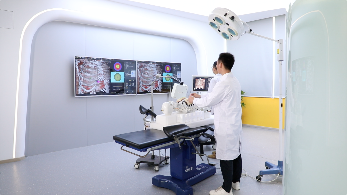 顾力栩教授的转化成果是“一基金两基地”合作中的首批落地南通的产业化项目。智能穿刺手术导航设备充分融合C臂/CT影像数据,结合虚拟现实三维沉浸场景,为医生提供实时逼真的智能导引环境,搭载国内首款智能导航穿刺针,实时获取病灶位置信息,辅助医生精准定位目标,具备图像显示、组织分割及建模、术前规划、呼吸矫正、术中导航、术后报告等功能,为胸腹部穿刺定位及后续精准手术治疗提供全方位解决方案,加速我国在智能精准手术高端装备领域的跃进。