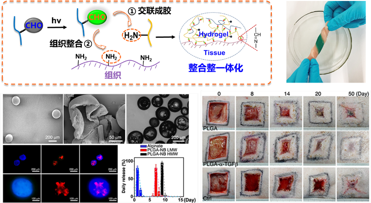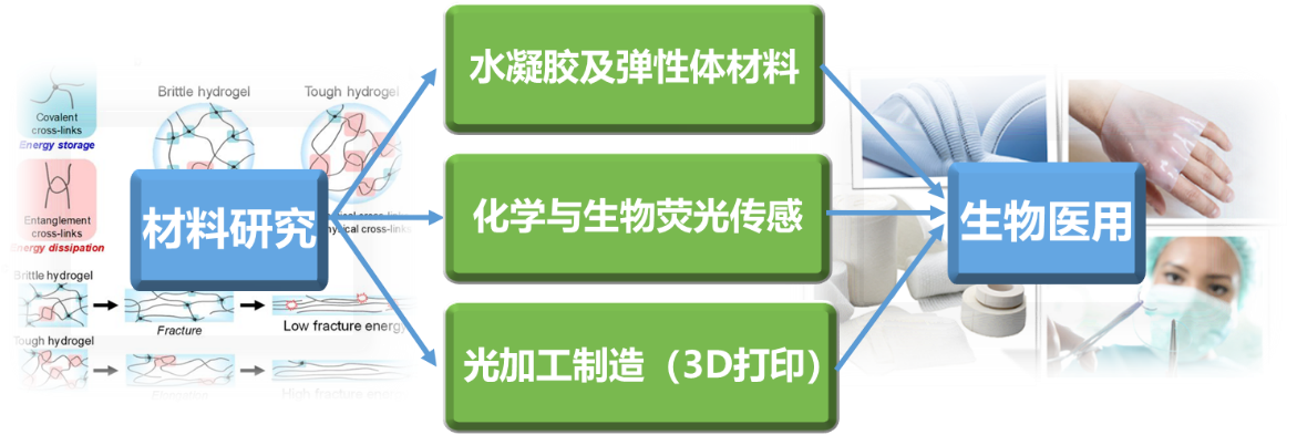水凝胶及弹性体材料:提出交联新机制,解决材料与组织的粘附及机械性能不足等问题,为解决临床问题提供新材料和新手段。