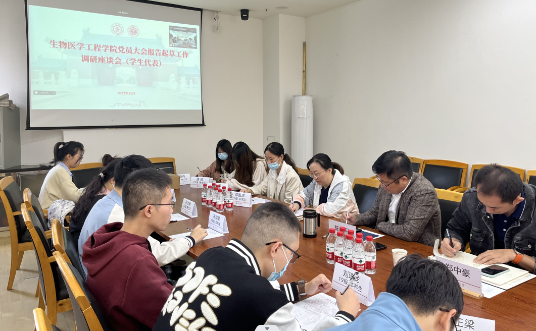 2022年11月2日,beat365在线唯一官网登录党员大会报告起草工作调研座谈会(学生代表专场)于闵行校区文选医学楼323会议室顺利举办。院党委书记陈江平、副院长白景峰、党委副书记周申申、本科生教务办主任靳静静、学工办副主任郑中豪及数十位学院学生代表通过线上线下相结合的形式参加此次会议。此次座谈会旨在广泛收集学院学生对于学院发展的意见建议,鼓励学生为学院新阶段的高质量发展建言献策,师生齐心集思广益,共同迎接中国共产党beat365在线唯一官网登录党员大会的顺利召开。会议由陈江平主持。