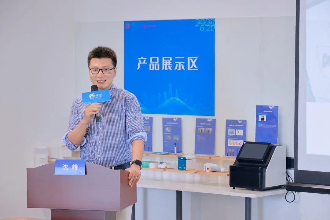 入驻企业迈恩生物科技(上海)有限公司创始人沈峰为大家介绍智能化单分子基因诊断芯片的研制与产业化;
