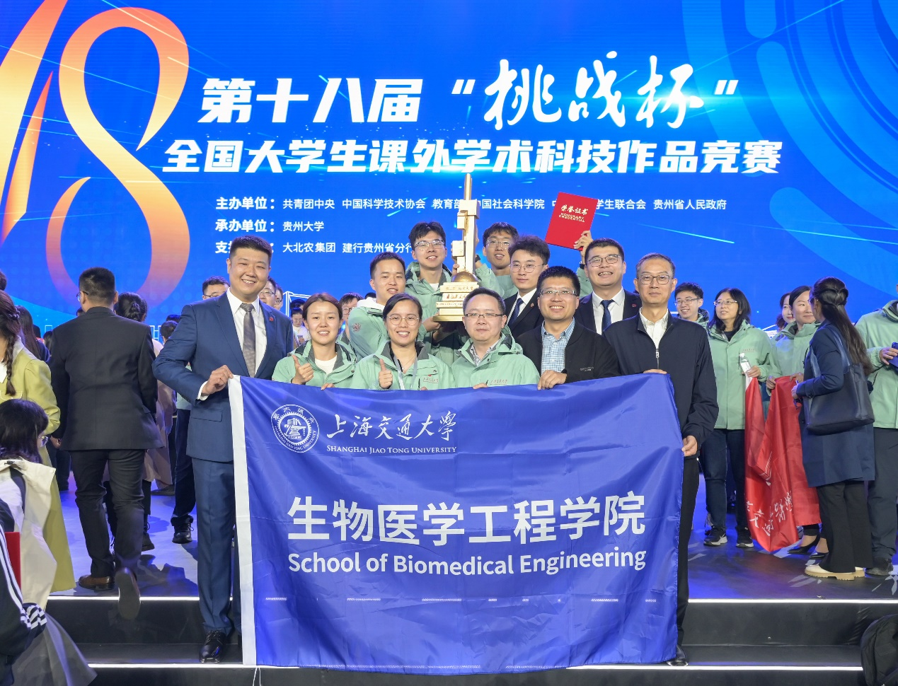 “挑战杯”全国大学生课外学术科技作品竞赛,以“崇尚科学、追求真知、勤奋学习、锐意创新、迎接挑战”为宗旨,每两年举办一次,被誉为当代大学生科技创新的“奥林匹克”盛会。本届“挑战杯”由共青团中央、中国科协、教育部、中国社会科学院、全国学联、贵州省政府共同主办,贵州大学承办,搭建主体赛、“揭榜挂帅”专项赛、红色专项活动、“黑科技”展示活动有机组成的“1+1+2”赛事整体架构,共吸引全国2000多所高校、40余万作品、250多万学生参赛。其中主体赛共有1745件作品推报国赛,经过初赛有344所内地高校的690件作品,9所港澳地区高校的23件作品入围终审,最终评出特等奖117个,一等奖203个、二等奖377个、三等奖974个(含港澳作品)。