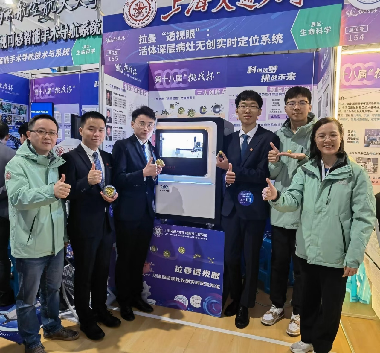 《拉曼“透视眼”:活体深层病灶无创实时定位系统》项目于2022年11月开始备赛,由叶坚老师、林俐老师全程指导,学院各级领导高度关注项目进展。项目团队在学校和学院的大力支持下,积极备战、全力以赴,在第十八届“挑战杯”市赛以及校内选拔赛中脱颖而出,并在全国总决赛中斩获“特等奖”,为交大问鼎全国总冠军贡献了生医工力量。