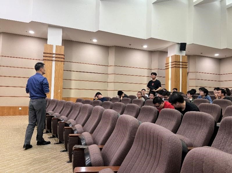 随后,陈垚教授向同学们阐述了毕业设计论文答辩及抽检的整个流程,并重点指出了检查模块的关键时间节点。对于学生们普遍关心的论文查重、材料提交、内容调整等问题,陈教授也提供了详尽的解答。此外,陈教授还就如何准备和组织答辩报告进行了深入讲解,内容涉及报告的时间安排、内容结构以及与听众的沟通技巧等。