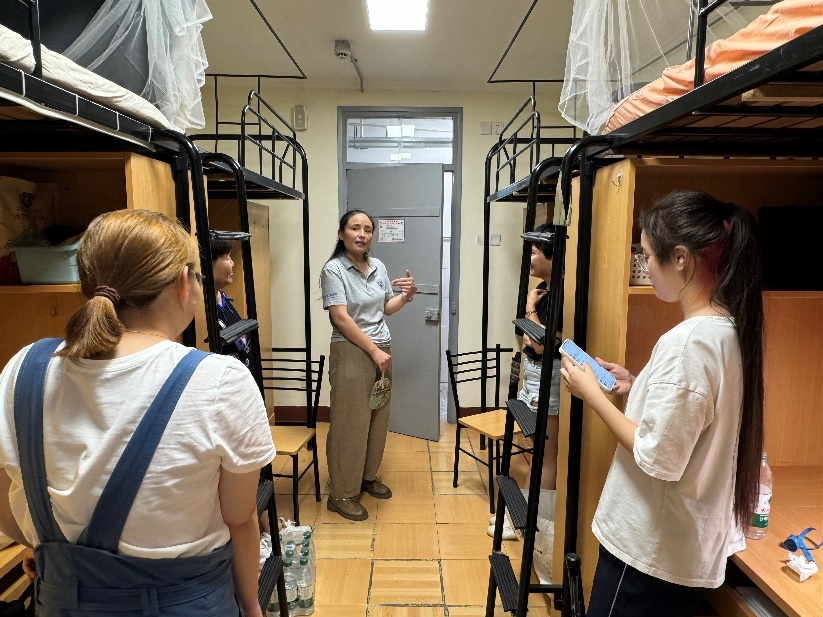 8月27日晚上,报到结束后,学院党委副书记朱春玲带领思政教师走访了新生寝室,关心同学们是否适应新环境,并为新生们送上新学期的美好祝福。