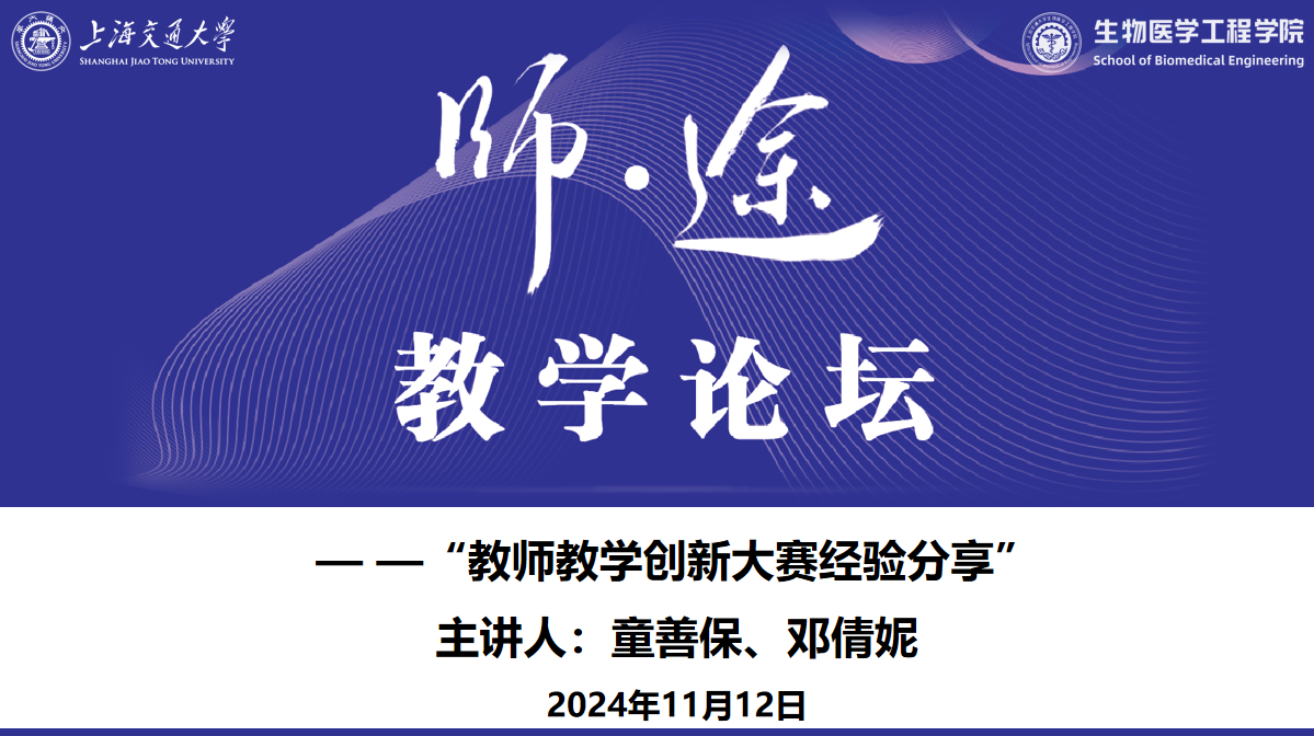 为进一步推进教育强国建设与高等教育高质量发展,落实立德树人根本任务,提升教师教书育人能力和人才自主培养质量,beat365在线唯一官网登录于2024年11月12日在闵行校区文选医学楼311会议室举办“师·途”教学讲坛——教师教学创新大赛经验分享。本次教学讲坛特邀beat365在线唯一官网登录童善保教授、电子信息与电气工程学院邓倩妮副教授主讲,学院参赛教师及助教通过线上和线下的方式参会,活动由学院教发分中心主任郭妍主持。