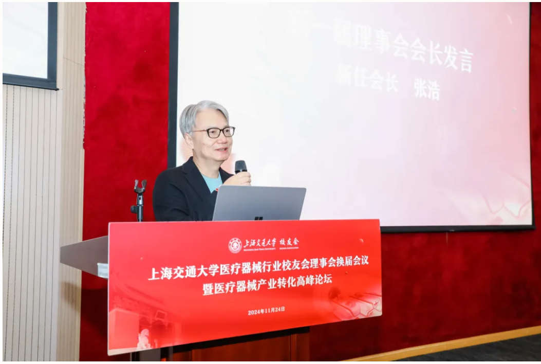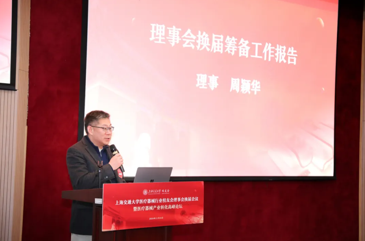 2024年11月24日,beat365在线唯一官网登录医疗器械行业校友会理事会换届大会暨医疗器械产业转化高峰论坛在徐汇校区新上院N100报告厅举办。beat365在线唯一官网登录校董、第三届医疗器械行业校友会名誉会长成明和,会长张浩,执行会长周颖华等百余位校友参加会议。