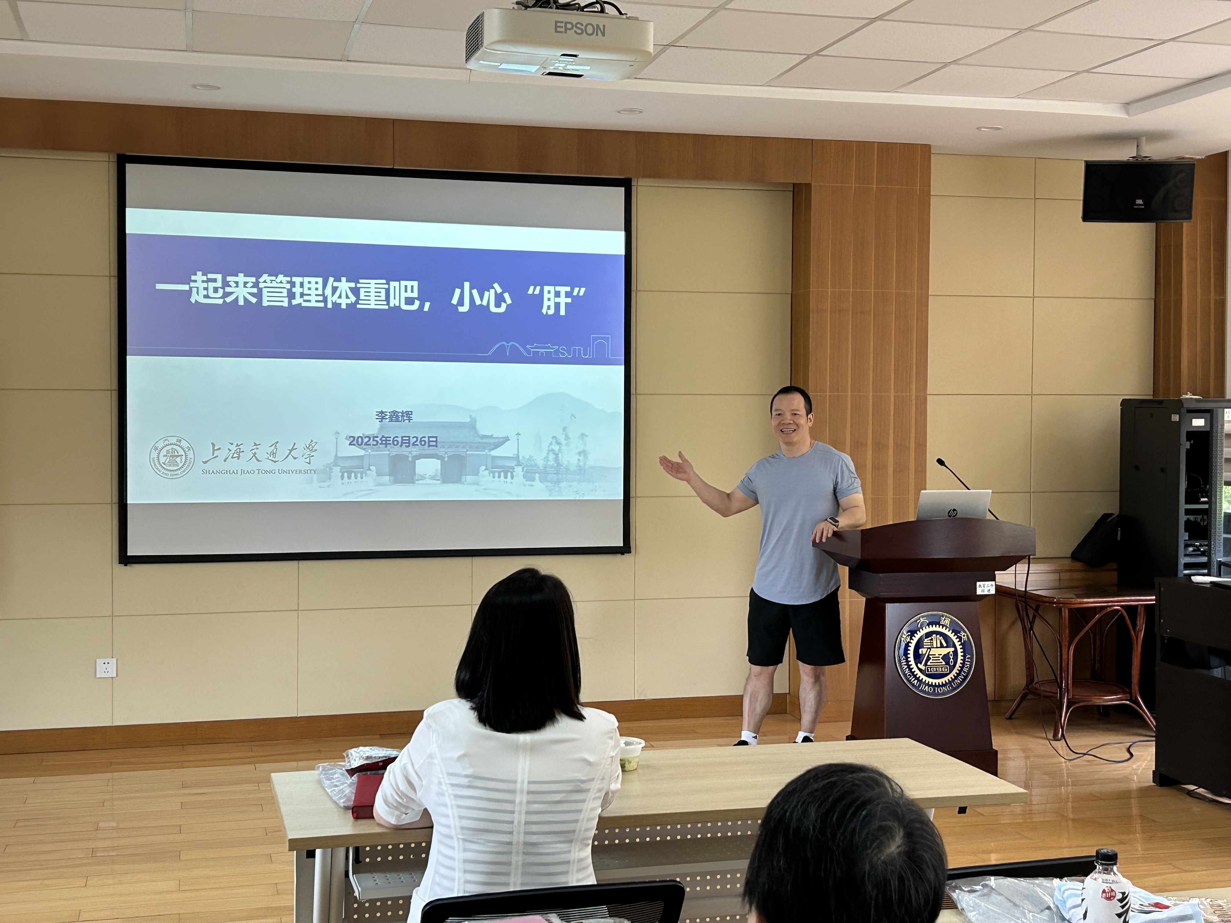 生医工学院李鑫辉老师以“专业教师”和”运动达人“的双重身份,为两院教职工作题为《一起来管理体重吧,小心“肝”》的讲座,他从饮食、运动及日常行为方式等多角度诠释了体重管理和健康生活的重要性,并结合自己的研究领域,讲解了脂肪肝的形成原理和预防方法。参会教职工热情高涨,与李老师就平衡膳食、科学运动、主动监测等细节进行探讨和交流。