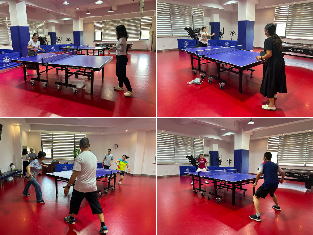 讲座结束后,两院教职工进行了乒乓球友谊赛。各位乒乓球爱好者摩拳擦掌,整装上阵。运动员们根据赛前的抽签结果进行两两组队,一场场激动人心的对决在不同的队伍间展开。参赛老师们展现了良好的竞技状态和体育精神,近十场对决精彩纷呈,赢得了现场观众的阵阵掌声。