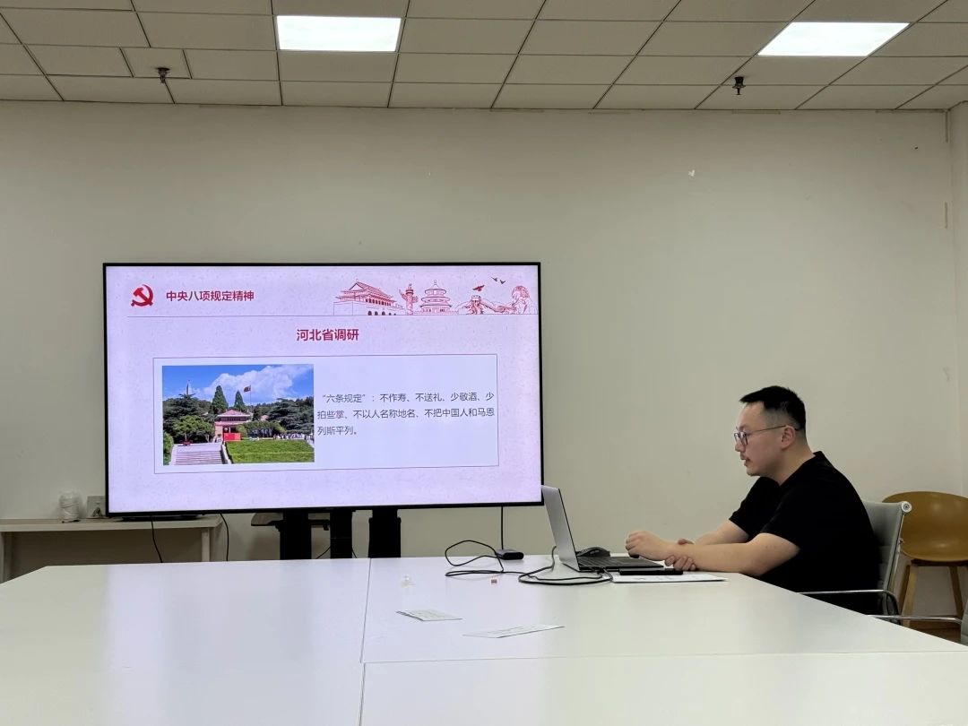 支部书记汪家榕带领大家重温了革命前辈的谆谆教导。2013 年仲夏,习近平总书记到河北省调研指导正在全国开展的党的群众路线教育实践活动。调研后,总书记来到平山县西柏坡革命旧址。1949年3月,在中国革命转折的关头,党召开七届二中全会。会上,毛泽东主席提出了著名的“两个务必”思想,即“务必使同志们继续地保持谦虚、谨慎、不骄、不躁的作风,务必使同志们继续地保持艰苦奋斗的作风”。