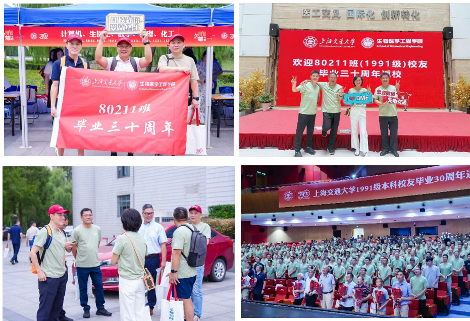 上午,校友在菁菁堂文化广场报到领取校友徽章及纪念物资,参加了学校组织的“百卅启新,久耀生辉”1991级本科校友毕业三十周年返校纪念大会。会上,校领导深情回顾学校百卅历程,致敬一代代交大人的坚守与拼搏。80211班校友齐聚盛会。